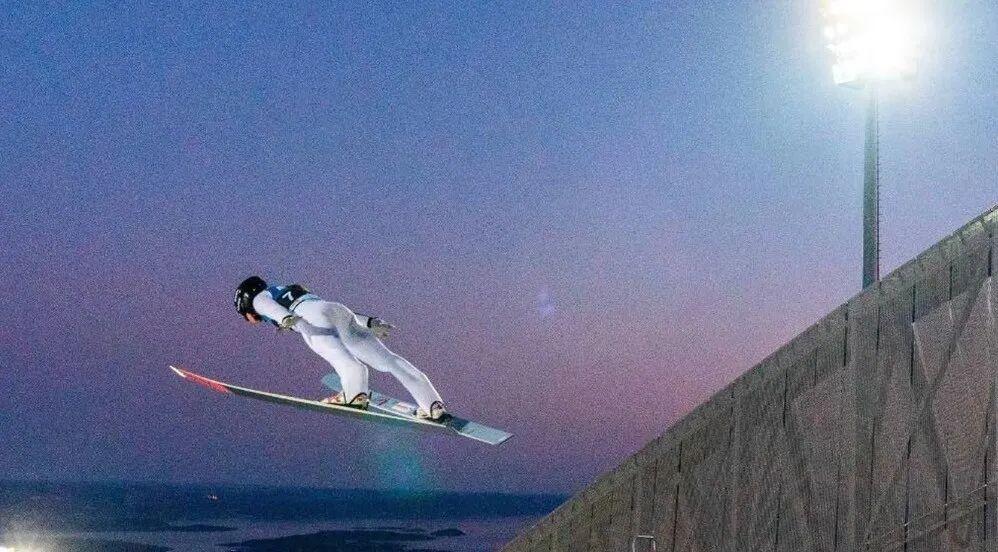 因此,运动员在空中的时候,会尽可能将身体前倾,滑雪板向外张开,把整个人变成一个巨大的“V”形,宛如鸟张开翅膀滑翔一样。